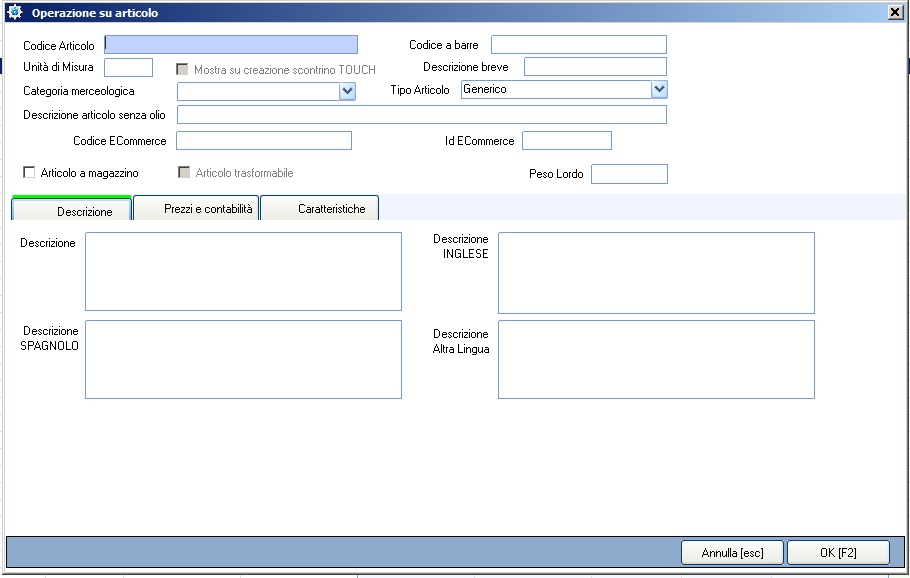 Cliccando su “OK” si applica la registrazione del nuovo articolo inserito.