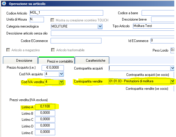 Altre informazioni assolutamente indispensabili riguardano la parte contabile/economica dell’articolo molitura.